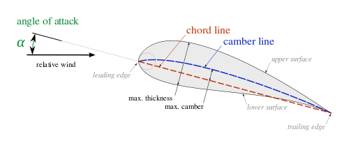An airfoil or aerofoil is a streamlined body or a a structure with curved surfaces designed to give the most favourable ratio of lift to drag in flight, used as the basic form of the wings, fins, and tailplanes of most aircraft.