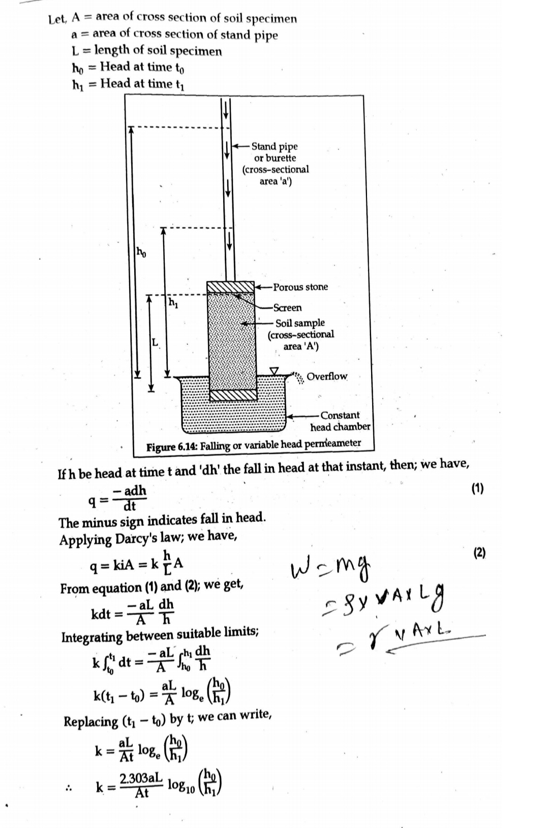 6. With the help of Darcy's law coefficient of permeability of coarse grained soil is calculated as below: