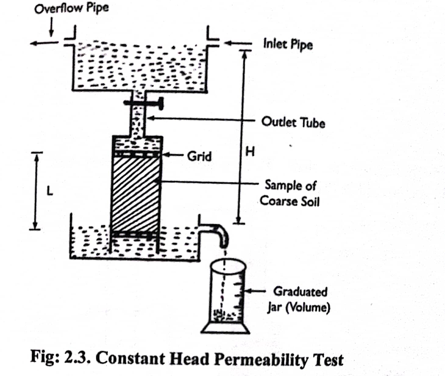 3. Vertical cylinder containing soil sample is provided with top & bottom grids (screen, pores plate) as shown in fig: 2.3.