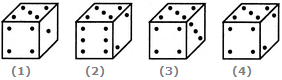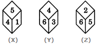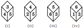 3. How many dots lie opposite to face having three dots, when given figure is folded to form a cube?