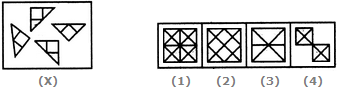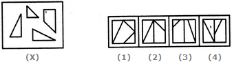 Find out which of figures (1), (2), (3) and (4) can be formed from pieces given in figure (X).