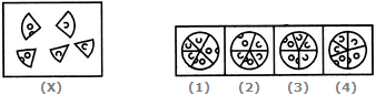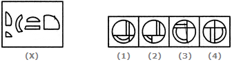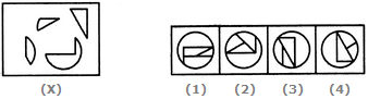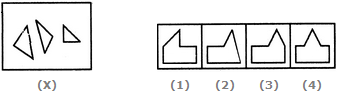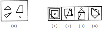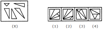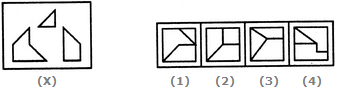 8. Find out which of figures (1), (2), (3) and (4) can be formed from pieces given in figure (X).