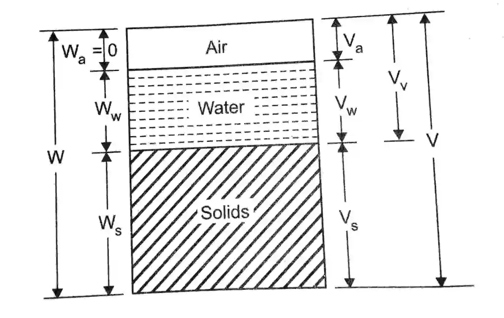The soil will behave as a two phase system when its void space is filled with either water or air alone. When all void space is filled with either water, the soil mass is fully saturated and exist in two phases as solid and water. When all the void space is filled with air the soil mass becomes dry soil and exists