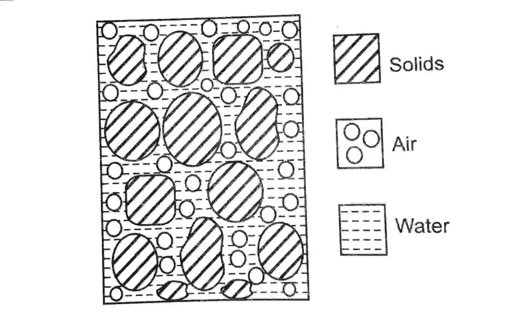 `V_s`  volume of water `V_w` and volume of air `V_a`. i.e. - `V =V_s+V_w+V_a`.