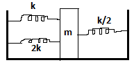 3. The springs in given diagram are fixed to walls. If block is displaced by a distance x from mean position, find time period of oscillations in seconds. Assume that re is no friction.