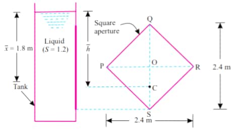 `bar (h)` be the distance of C.G. of the area from the free surface of the liquid