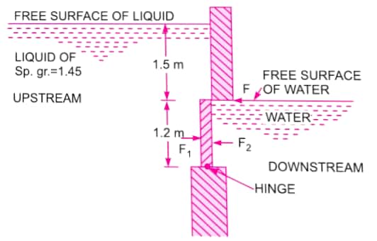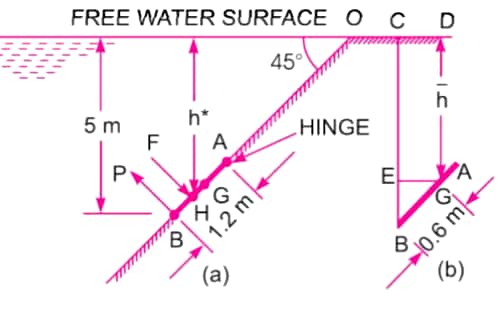 Hence the free liquid surface may be considered to be 3 m further above the hinge as shown in figure. This free surface is known as imaginary free surface of oil.