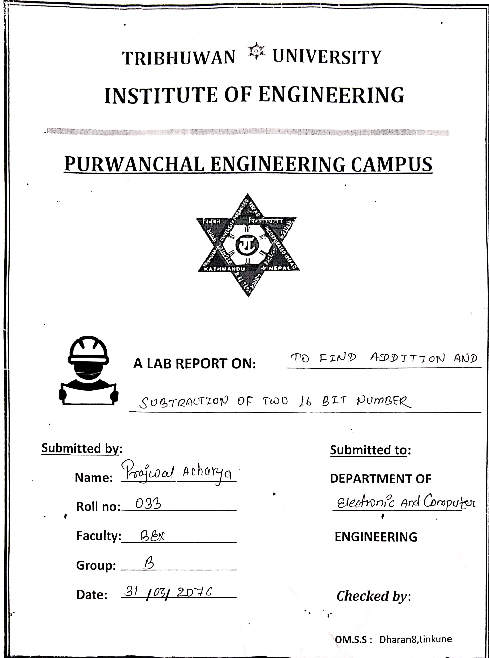 This Chapter Addition-and-subtraction-of-two-16-bit-number- consists of the following topics