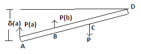 A rigid beam ABCD is hinged at D and supported by two springs at A and B as shown in given figure. The beam carries a vertical load P and C. stiffness of spring at A is 2K and that of B is K.