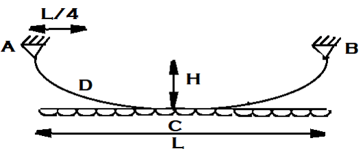 Minimum tension in cable when loaded uniformly throughout span is ____