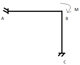 A and C are fixed supports. M acts at point B in clockwise direction. AB = BC = L. EI is constant throughout the frame.