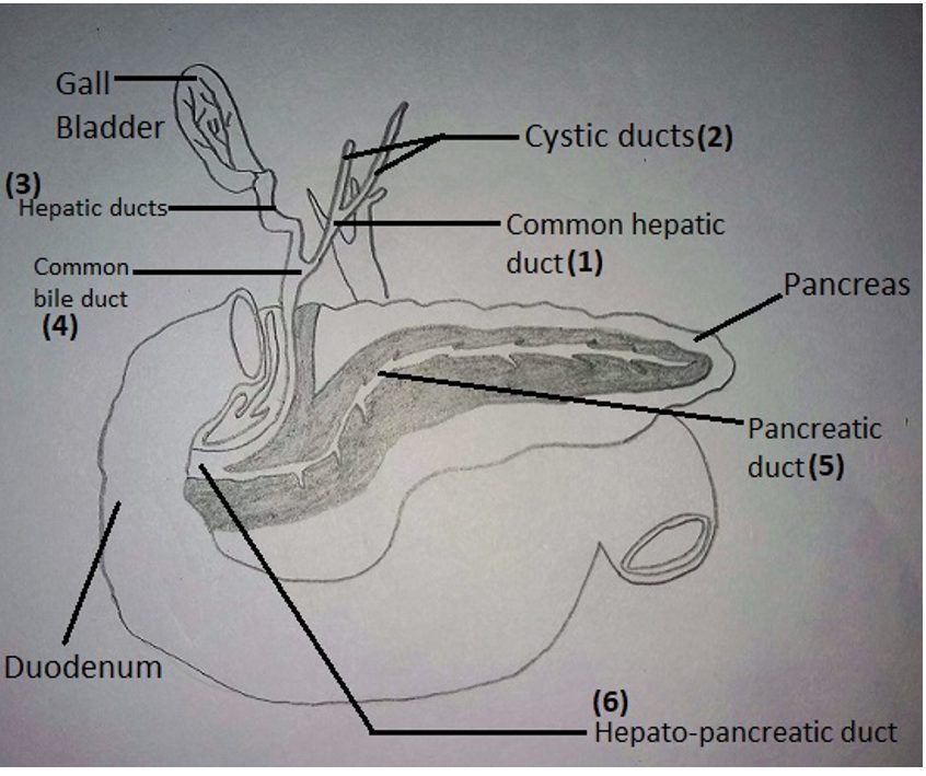 Which two ducts are marked incorrectly in given diagram?