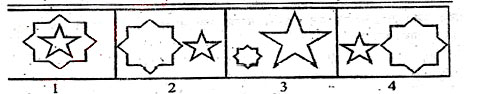 तलका चित्रहरुको एक लहर दिइएको छ । तिनिहरु निश्चित क्रममा रहेका छन् । दिइएको १,२,३,४, विकल्पहरु मध्येवाट प्रश्नमा दिइएको अन्तिम चित्र पछि आउने उपयुक्त छान्नुहोस ।